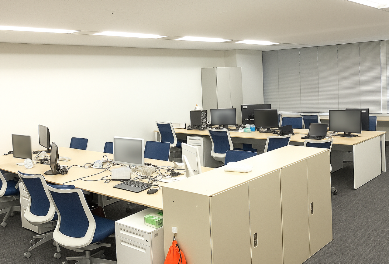✔ 執務室のレイアウト変更により、動線とコミュニケーション効率を改善