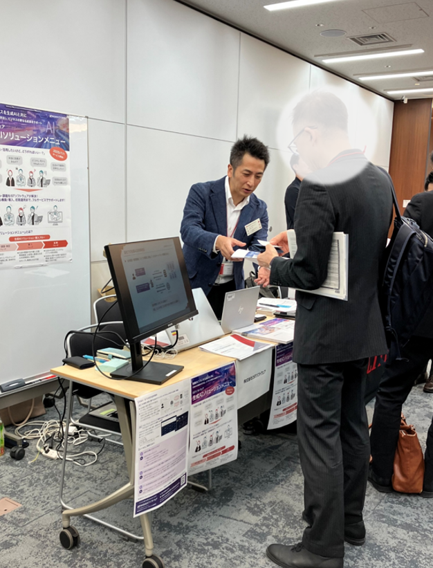 展示ブースでは、自社での生成AI活用/業務効率化やプロジェクトでの活用事例などをご紹介し、ご来場いただいた皆様より、生成AIの導入や活用方法についてなど、多数のご質問・ご相談をいただきました。