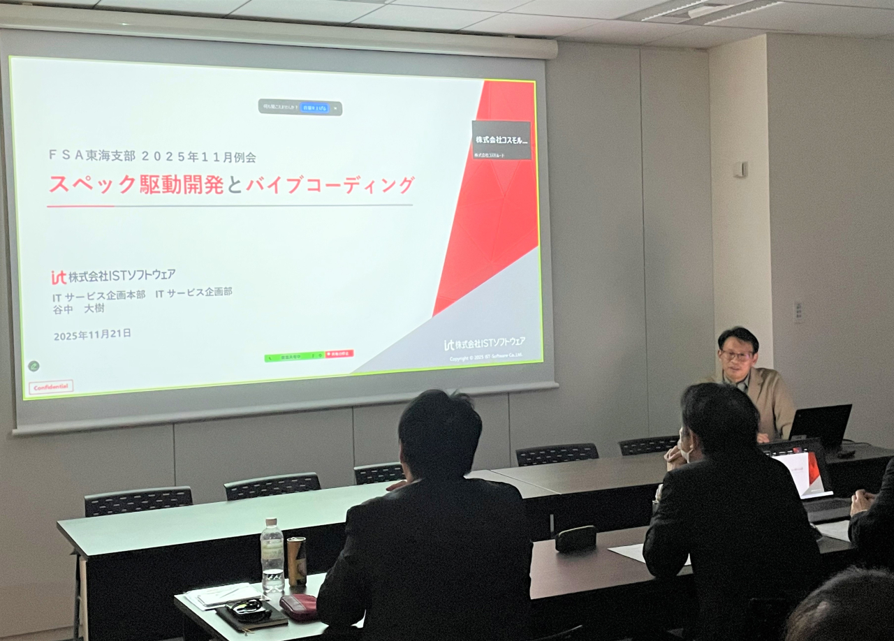 2025年11月21日(金)に開催されたFSA(※)東海支部2025年11月例会にて、当社ITサービス企画部部長が登壇し、下記2つのテーマで講演を行いました。