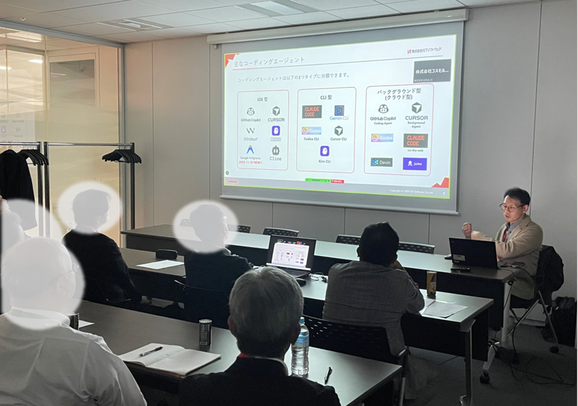 講演では、近年注目されているAIエージェント技術を活用した最新の開発プロセスについて、「どのように実務プロセスへ組込み、成果につなげていくか」、「要件の精度向上や作業生産性の向上をどのように実現するか」を、解説しました。