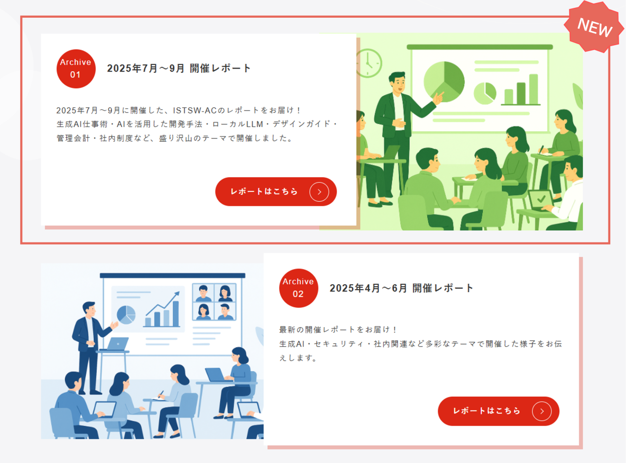 このたび、2025年7月~9月分の開催レポートを追加いたしました。