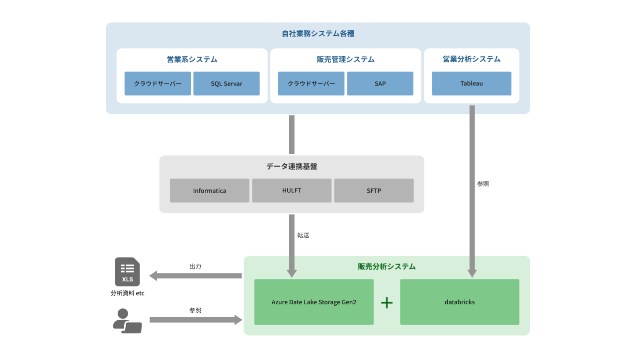 | 開発環境 | 環境:Microsoft Azure Databricks 言語:Python(PySpark)、VB SCRIPT、POWER SHELL ツール:Microsoft Azure Logic Apps、Microsoft StorageExplorer、GitHub、HULFT |